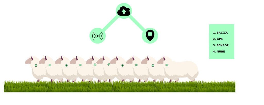 Uno o varios animales actúan como «Animal router» y mediante balizas permite georre­ferenciar a buena parte del ganado de forma muy económica.